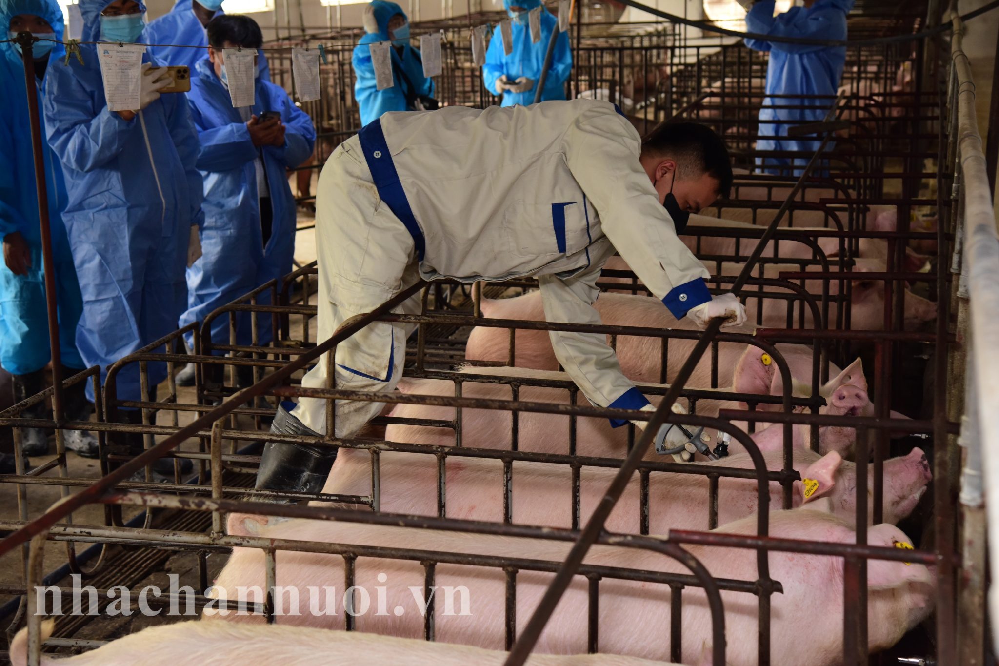 Cụ thể, ngày 11/3/2024, Công ty AVAC đã thực hiện lấy mẫu trước khi tiêm và tiêm 01 mũi cho 270 lợn nái và đực giống.