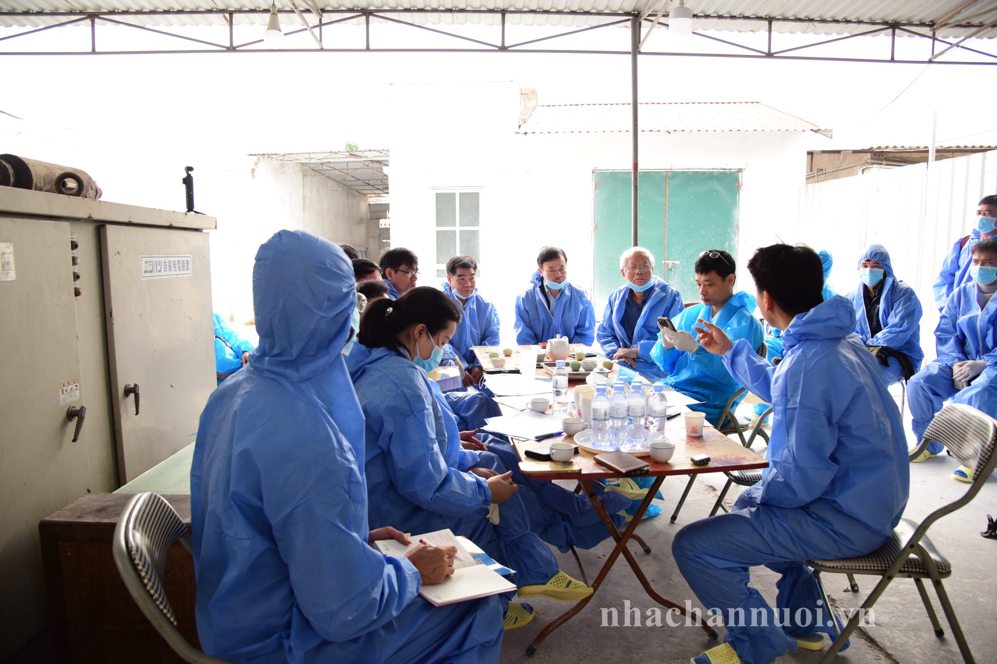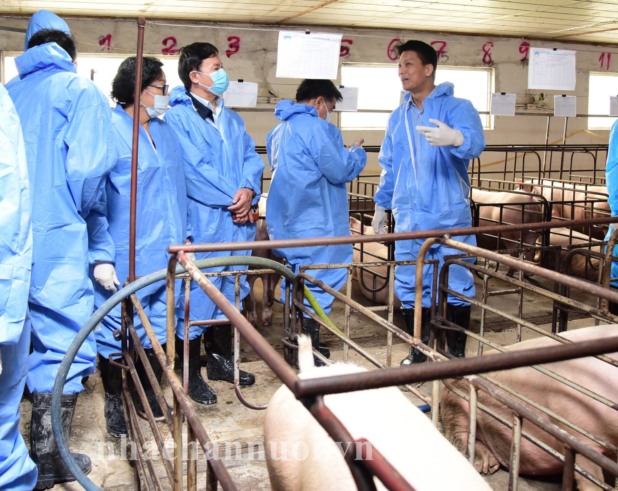 Các đại biểu đi thực tiễn trong chuồng lợn nái được tiêm vắc xin